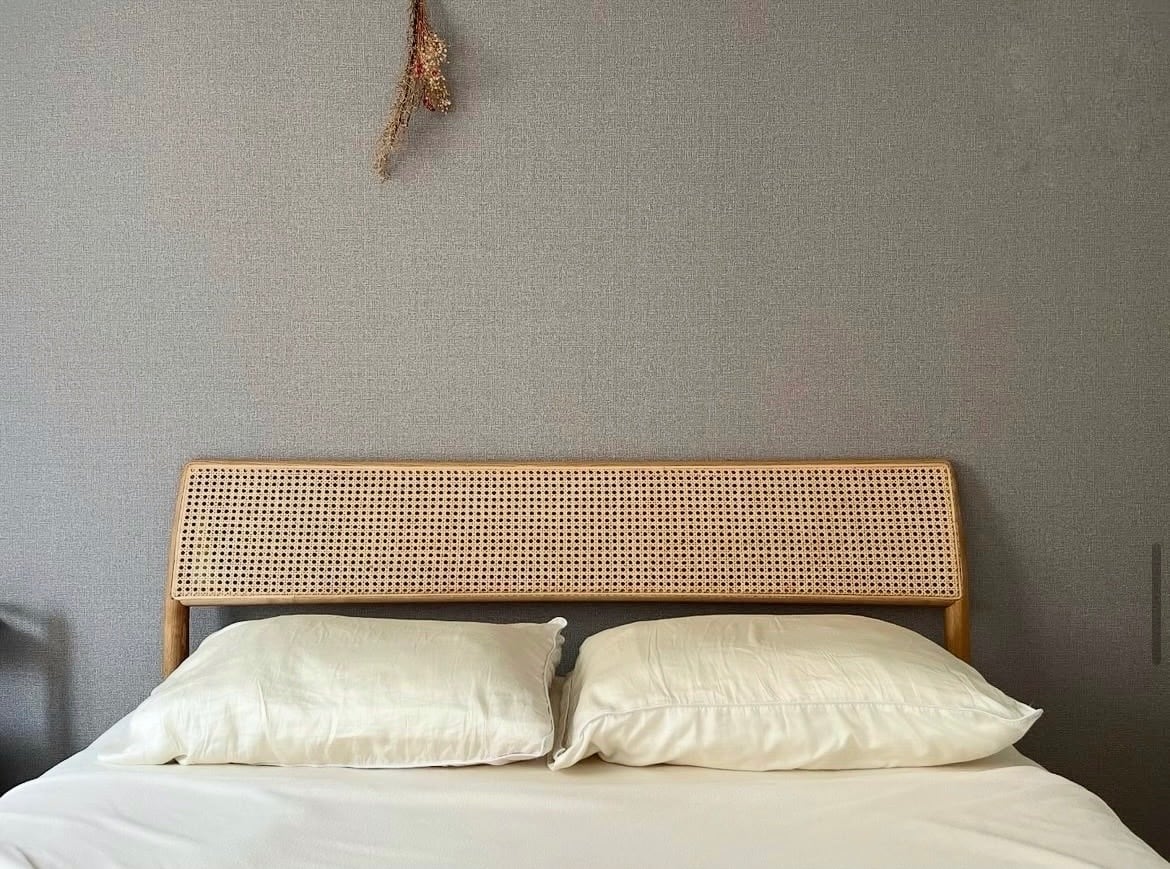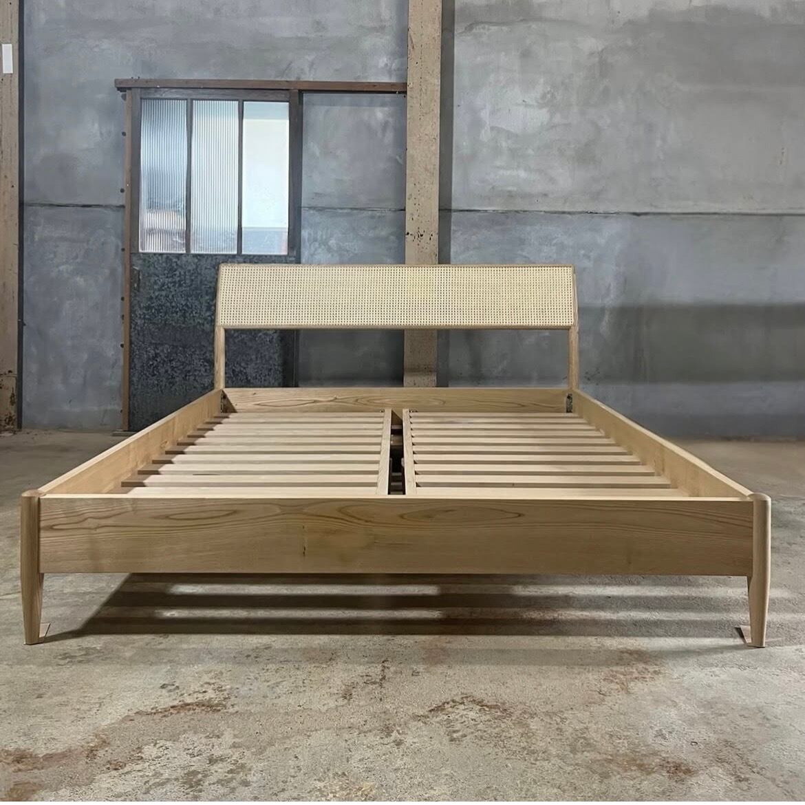 無垢材と籐を使用したベッドフレームです。